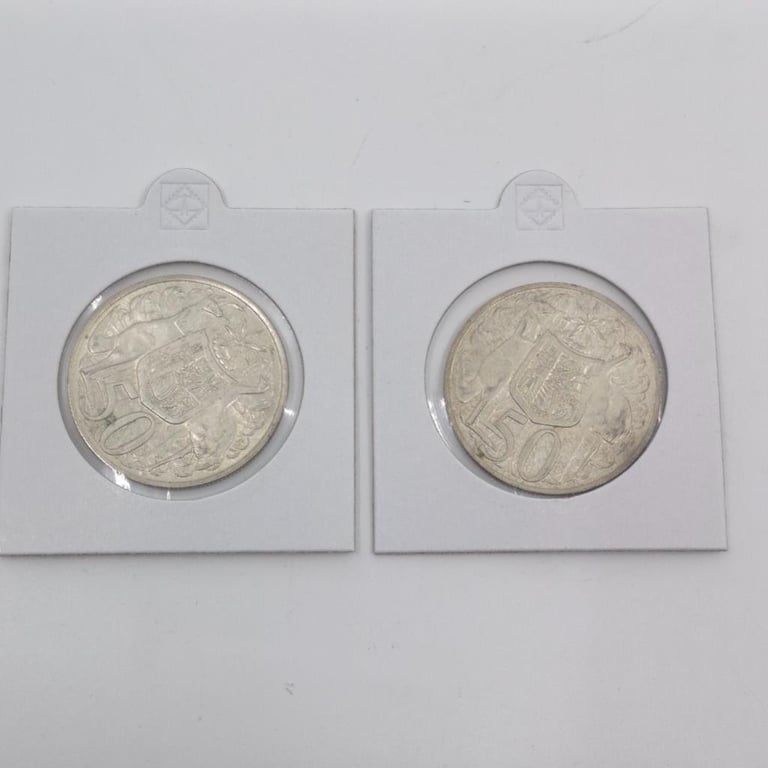 TWO AUSTRALIAN 1966 ROUND FIFTY CENT SILVER COIN. HIGH GRADE Condition: Good587689+56
