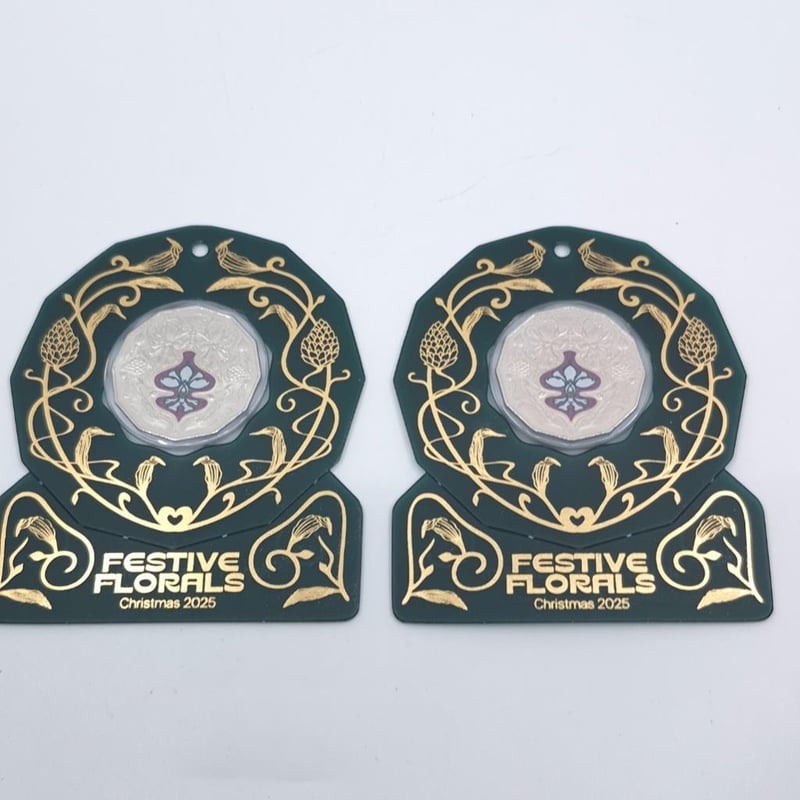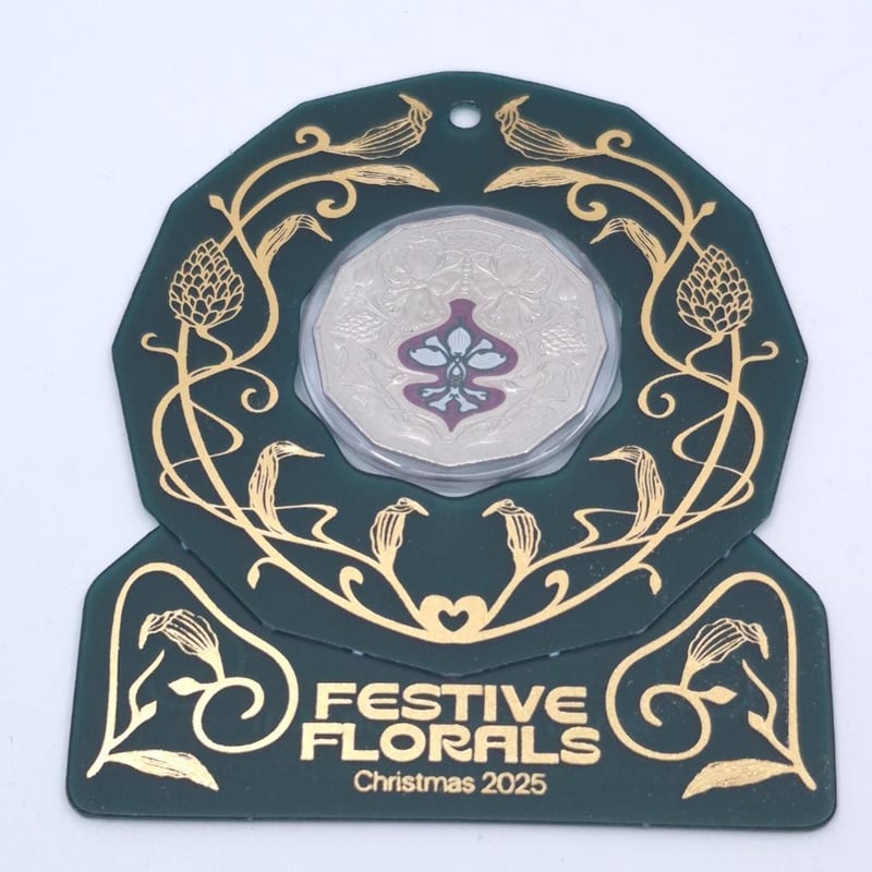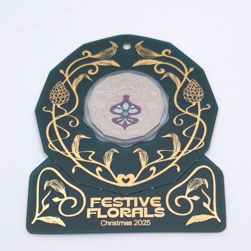TWO ROYAL AUSTRALIAN MINT SCARCE 2025 CHRISTMAS FESTIVE FLORALS COLORISED COLLECTOR COINS. UNCIRCULATED Condition: Good587689+66