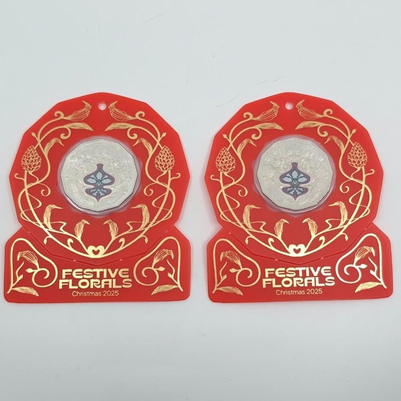 TWO ROYAL AUSTRALIAN MINT SCARCE 2025 CHRISTMAS FESTIVE FLORALS COLORISED COLLECTOR COINS. UNCIRCULATED Condition: Good587689+71
