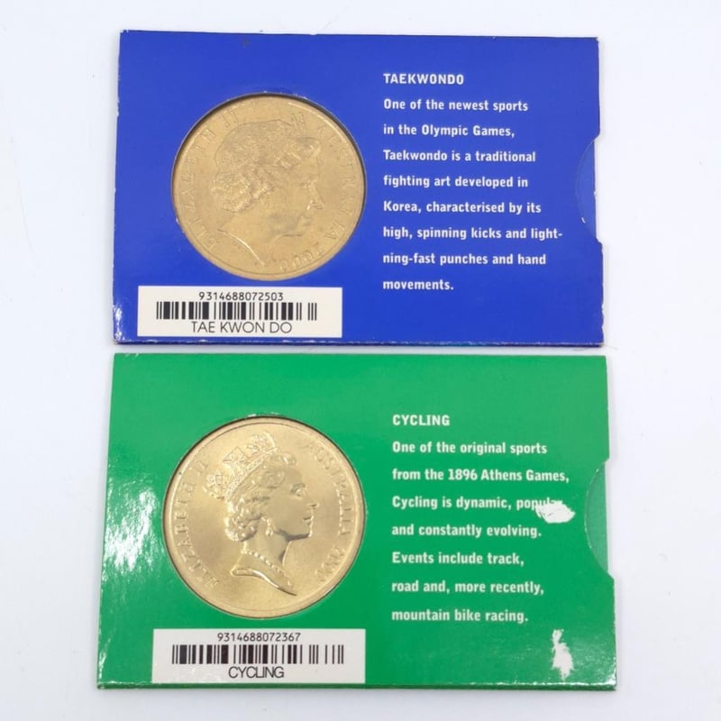 TWO ROYAL AUSTRALIAN MINT2000 SYDNEY OLYMPIC CYCLING & TAEKWONDO $5 COINS. UNCIRCULATED Condition: Good587689+75