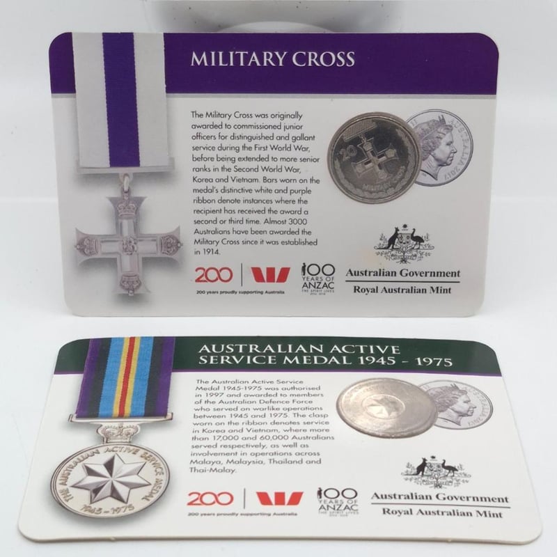 TWO ROYAL AUSTRALIAN MINT LEGACY MILITARY CROSS AND SERVICE MEDALLS. UNCIRCULATED Condition: Good587689+86