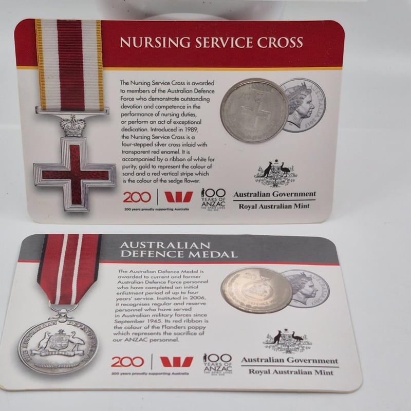 TWO ROYAL AUSTRALIAN MINT LEGACY DEFFENCE AND NURSING SERVICE CROSS MEDALLS. UNCIRCULATED Condition: Good587689+91