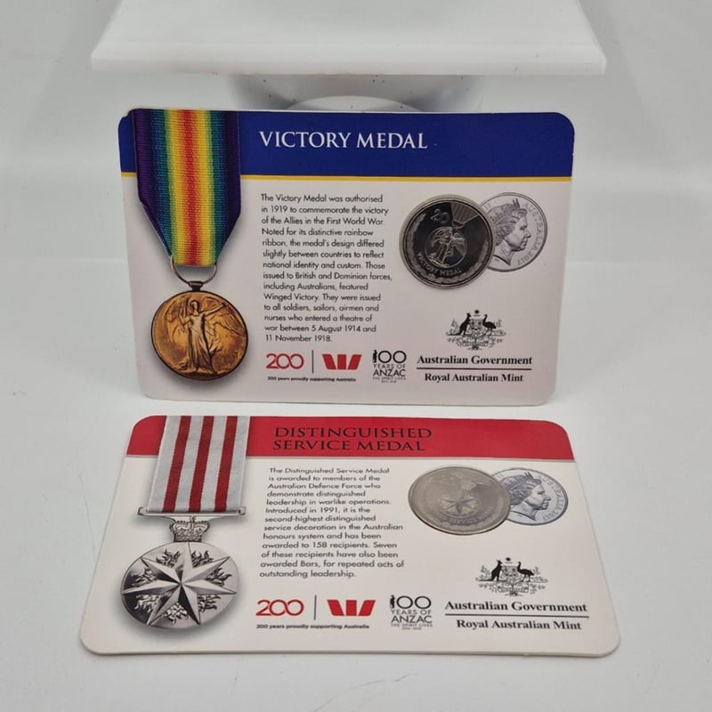 TWO ROYAL AUSTRALIAN MINT LEGACY DISTINGUISHED SERVICE AND VICTORY MEDALLS. UNCIRCULATED Condition: Good587689+92