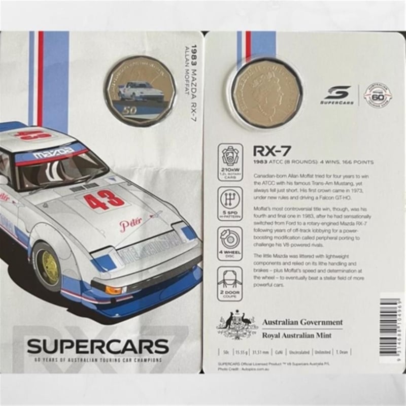 AUSTRALIA : 2020 50 CENT SUPERCARS 1983 MAZDA RX-7 ALLAN MOFFAT COIN 311123+27