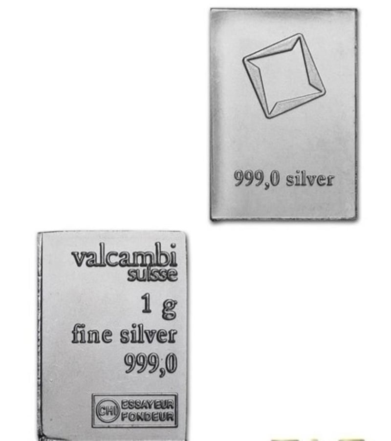 999 FINE SILVER 1 GRAM VALCAMBI SUISSE BAR 311130+34