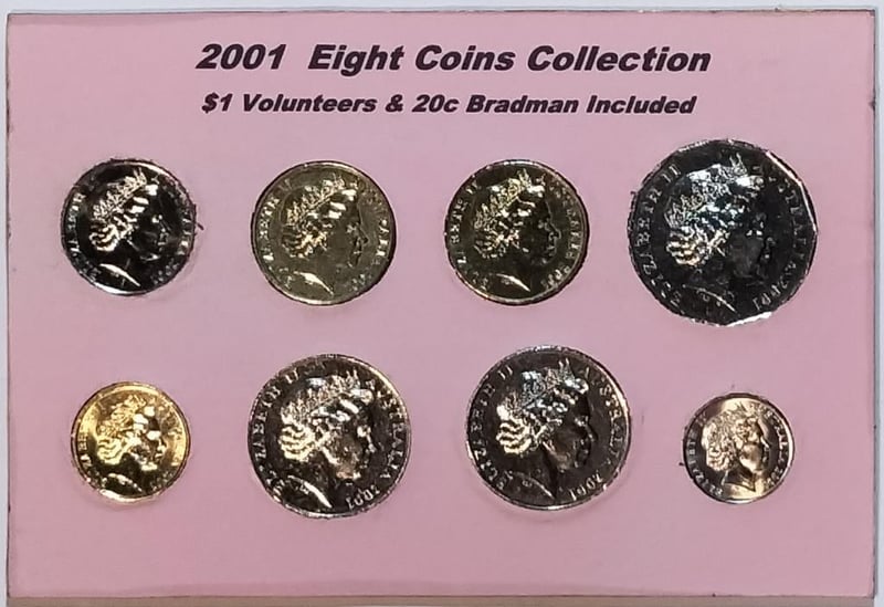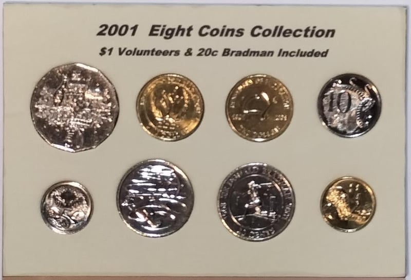 2001 EIGHT COINS COLLECTION $1 VOLUNTEERS & 20C BRADMAN INCLUDED Ex Mint Bag 488325+2
