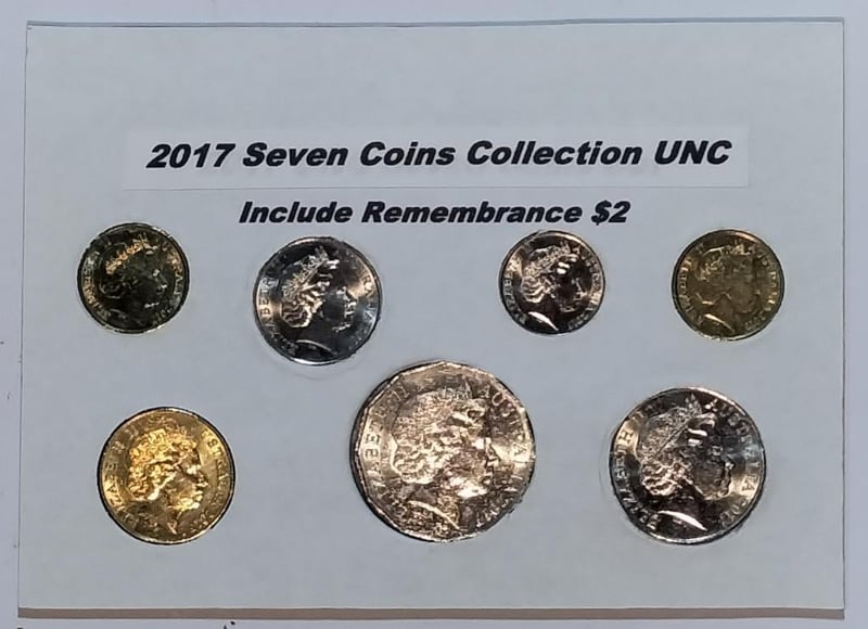 2017 SEVEN COINS COLLECTION $2 REMEMBRANCE INCLUDED Ex Mint Bag 488325+12