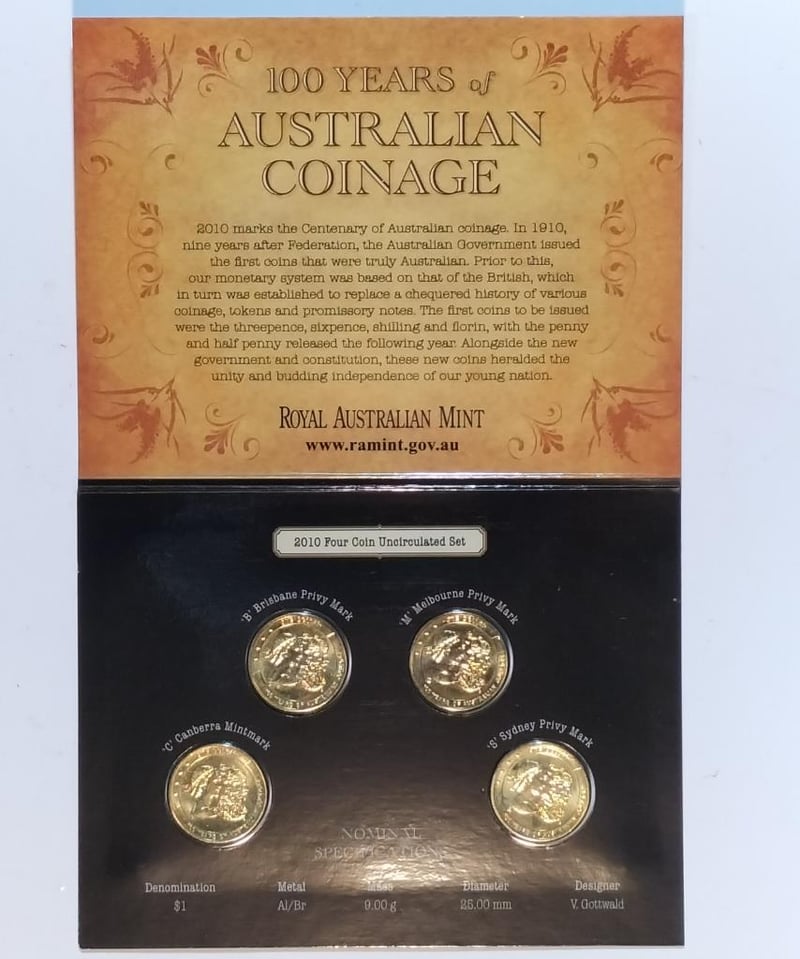 2010 100 YRS OF AUSTRALIAN COINAGE CBMS MINT MARK COINS SET Mint Folder Condition: UNC488325+14
