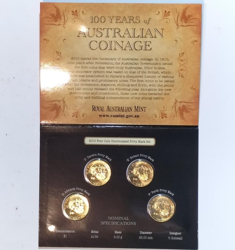 2010 100 YRS OF AUSTRALIAN COINAGE ADHO MINT MARK COINS SET Mint Folder Condition: UNC488325+15