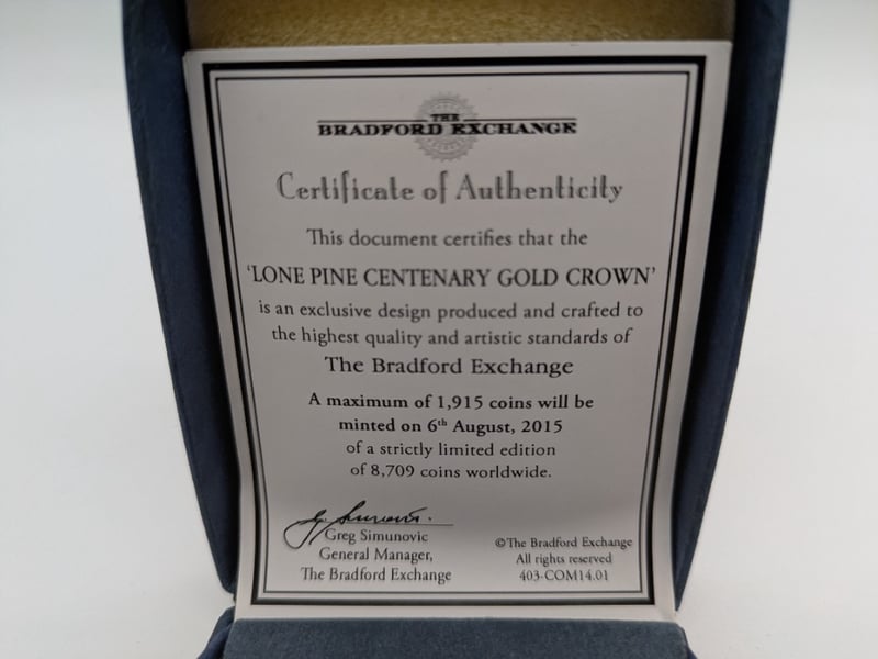 LONE PINE CENTENARY COLD CROWNCertificate Of AuthenticityCondition: GoodWINNELLIE153866+6