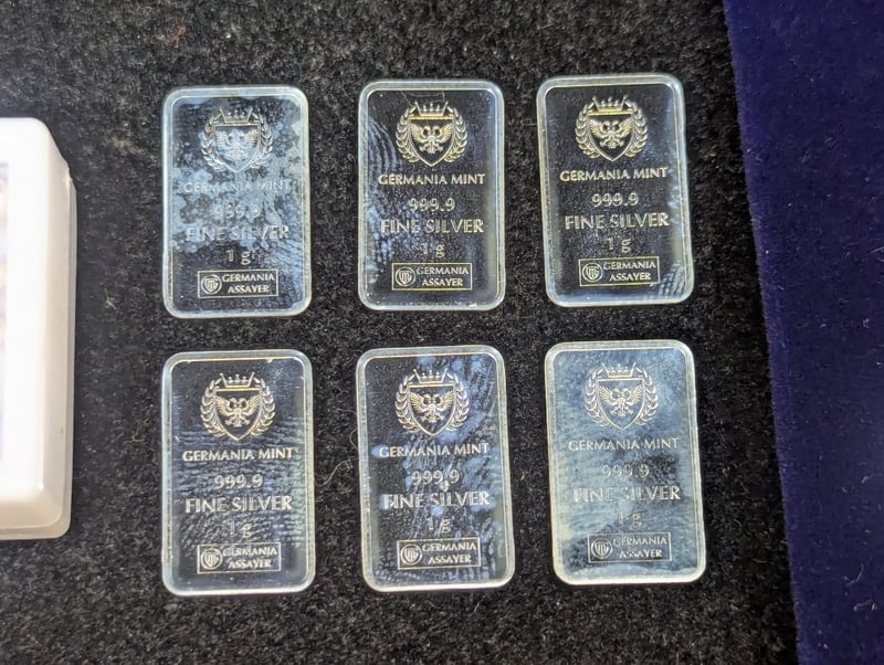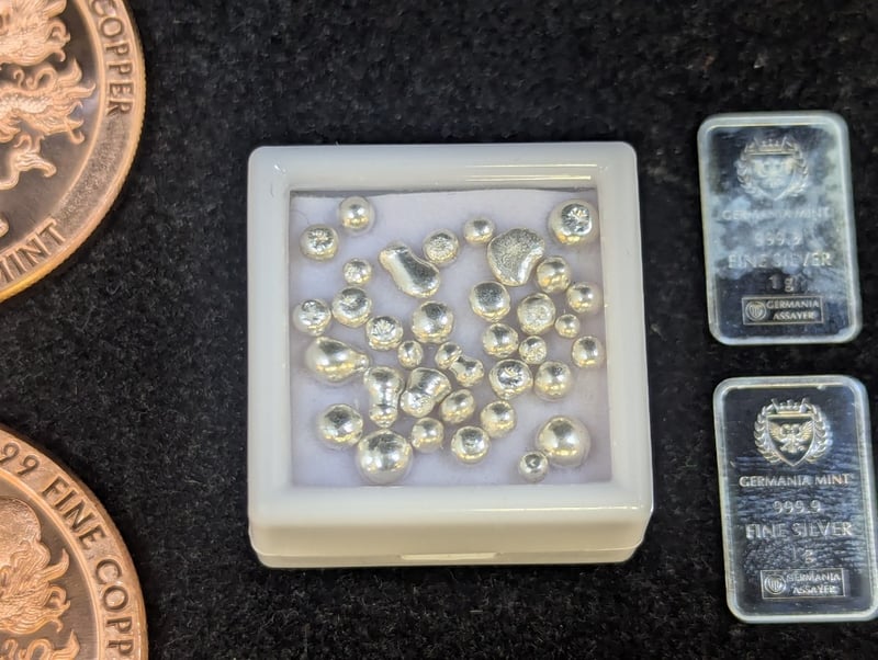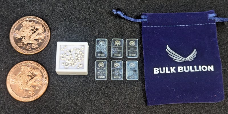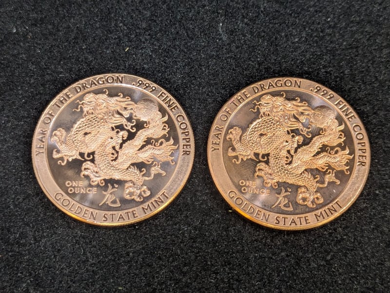 COLLECTION OF SILVER AND 1OZ COPPER COINSIncludes Approx 4.9G Silver Scrap, Six 1G Germania Mint 999.9 Fine Silver Bars, Two 1Oz Golden State Mint Year Of The Dragon Fine Copper Coin584937+72