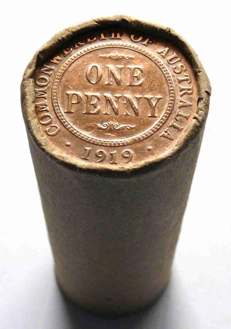 ROLL OF 1919 KGV AUSTRALIAN PENNY (50X CIRCULATED COINS IN A ROLL). 488345+17