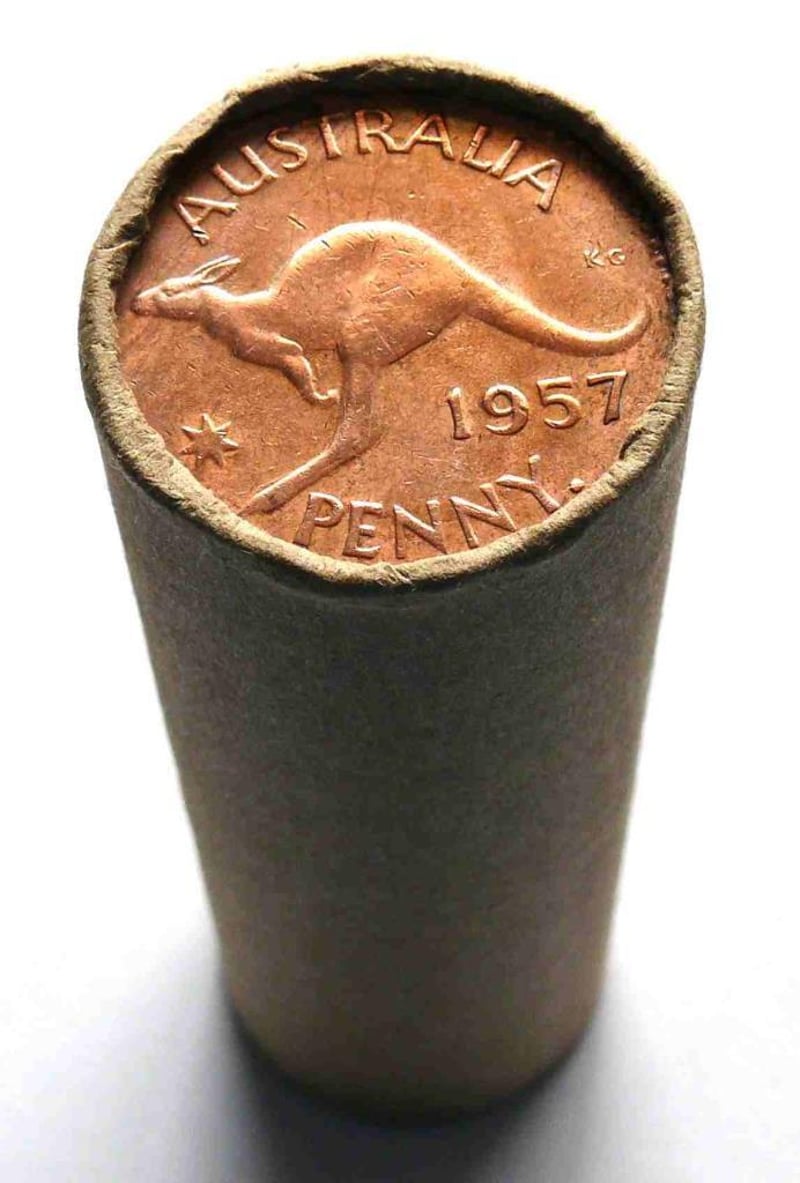 ROLL OF 1957 QELL AUSTRALIAN PENNY (50X CIRCULATED COINS IN A ROLL). 488345+20