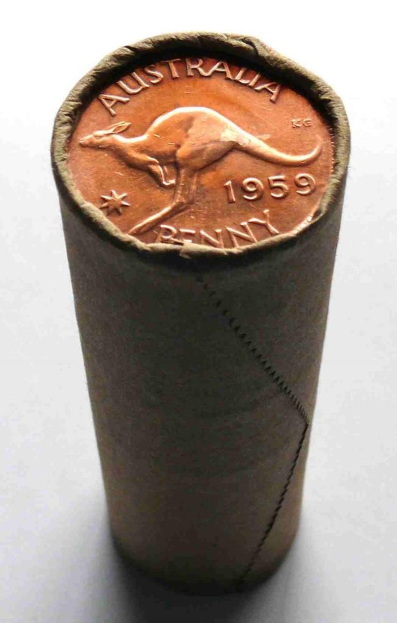 ROLL OF 1959 QELL AUSTRALIAN PENNY (50X CIRCULATED COINS IN A ROLL). 488345+21