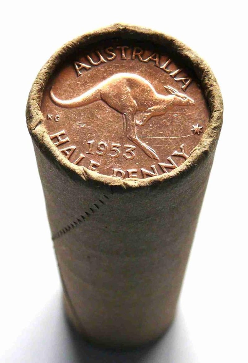 ROLL OF 1953 QEII, AUSTRALIAN HALF PENNY (50X CIRCULATED COINS IN A ROLL). 488345+24