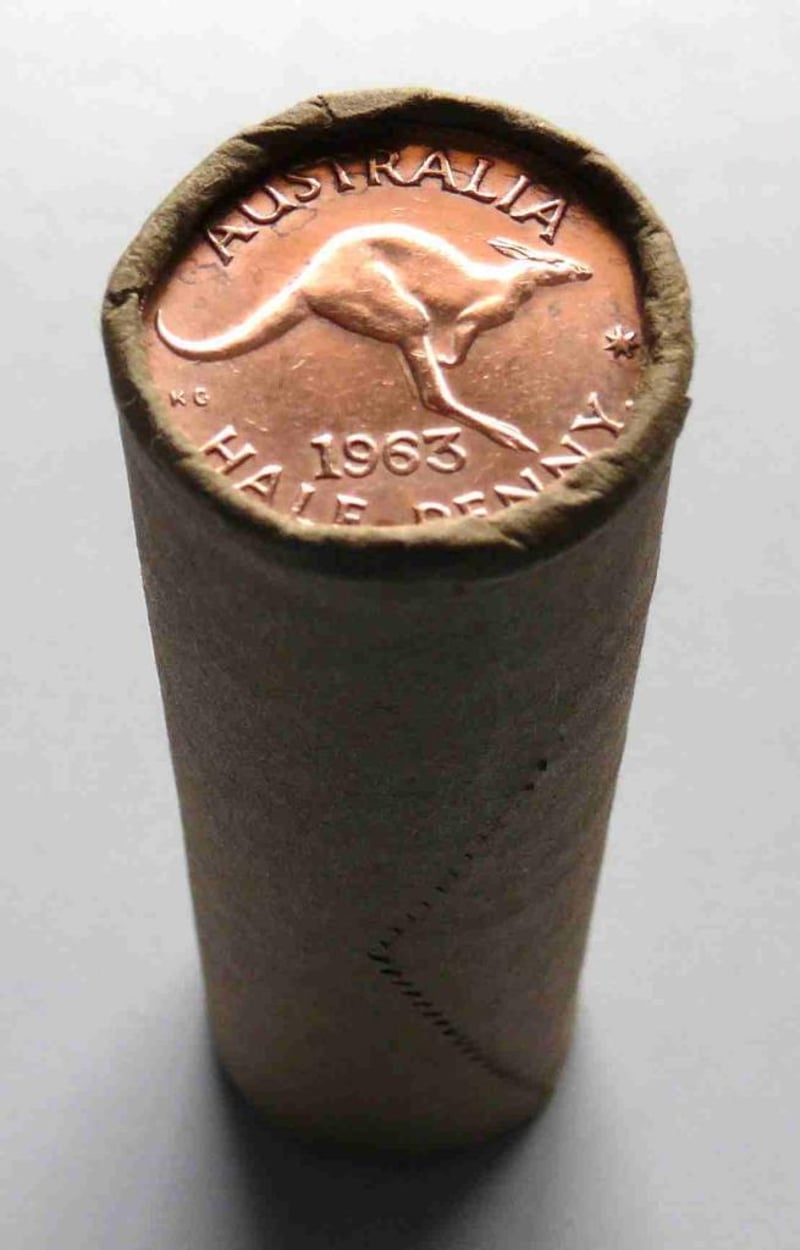 ROLL OF 1963 QEII, AUSTRALIAN HALF PENNY (50X CIRCULATED COINS IN A ROLL). 488345+25