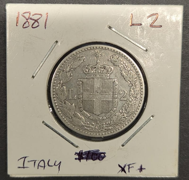 1881 ITALY 2 LIRA XF+Italian Coin+52