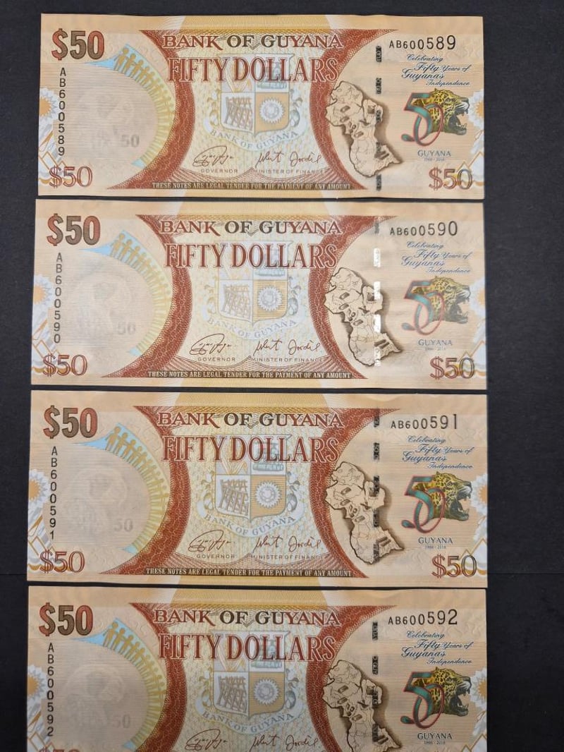 $50 DOLLAR NOTES RUN OF 4 AB PREFIXBank Of Guyana +60