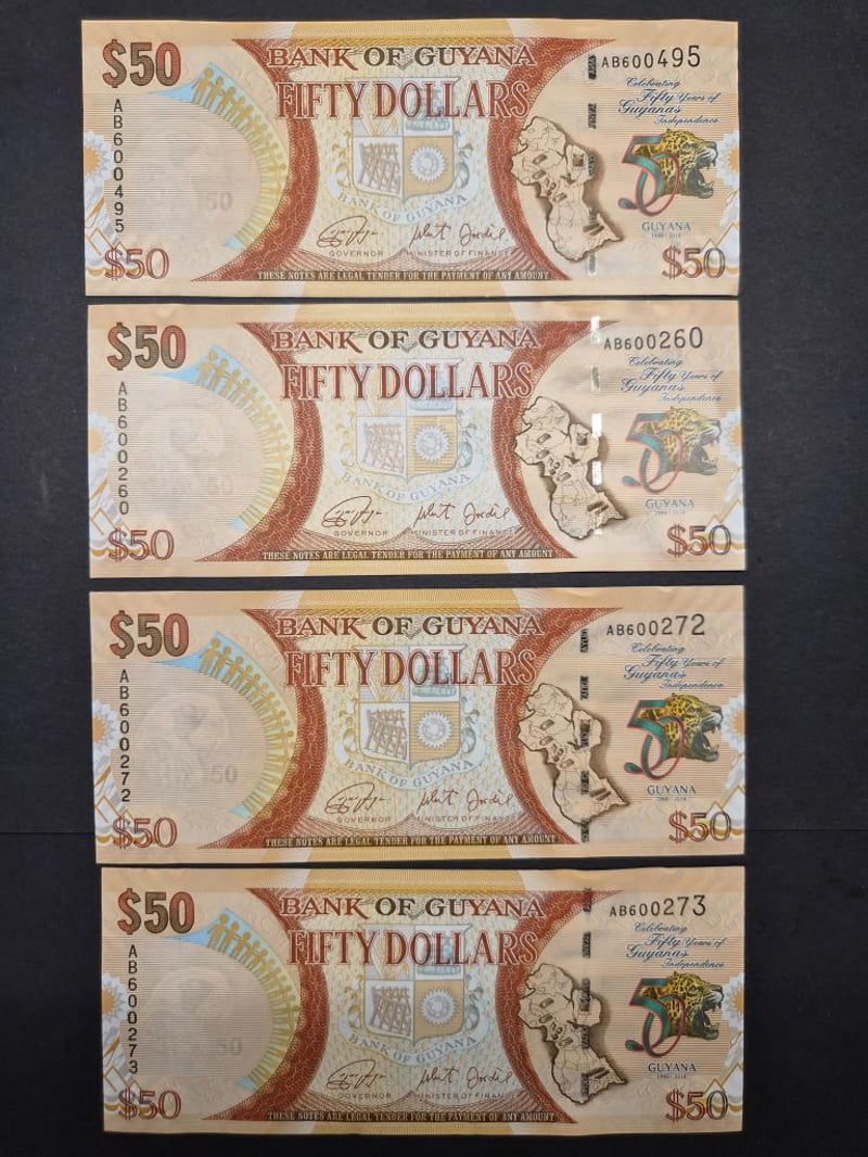 GUYANA $50 DOLLAR NOTES X 4Bank Of Guyana +61