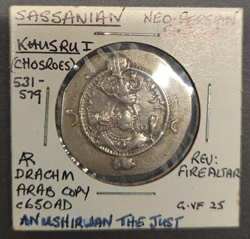 SASSANIAN KHUSRU I SILVER DRACHMAncient Coin From 531-579 Ad+46