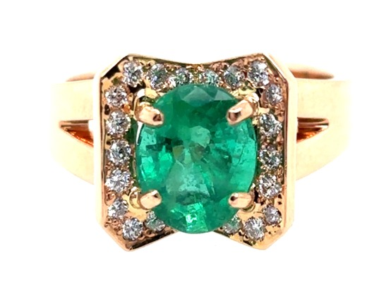 Featuring Oval Cut Emerald, Claw Set, 1.94Ct In Weight (8.8 X 6.8Mm), And Medium Vivid Green In Colour. 22 Round Brilliant Cut Diamonds, Set Around Centre Stone And In Shoulders Of Ring, 0.24Ct In Total Combined Weight, Vs In Clarity And G In Colour. Ring Is 7.38 Grams In Weight And Finger Size N