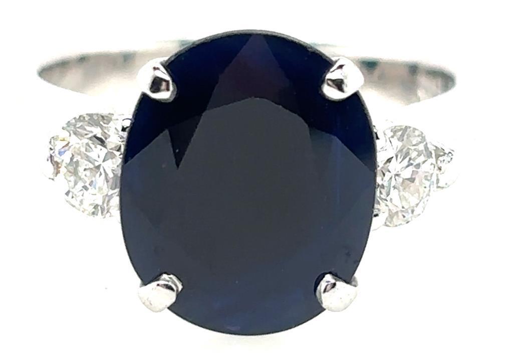 This 18Ct White Gold Ring Features 1 X 4.02Ct Oval Cut Claw Set Natural Sapphire, Measuring 11.98Mm X 9.82Mm X 3.51Mm And Is Blue In Colour With Indications Of Heat Treatment As Per Aig Report Number: Gem2023022083014 With 2 X Round Brilliant Cut Diamonds, 0.56Ct In Total Combined Weight, Vs In Clarity And F In Colour.