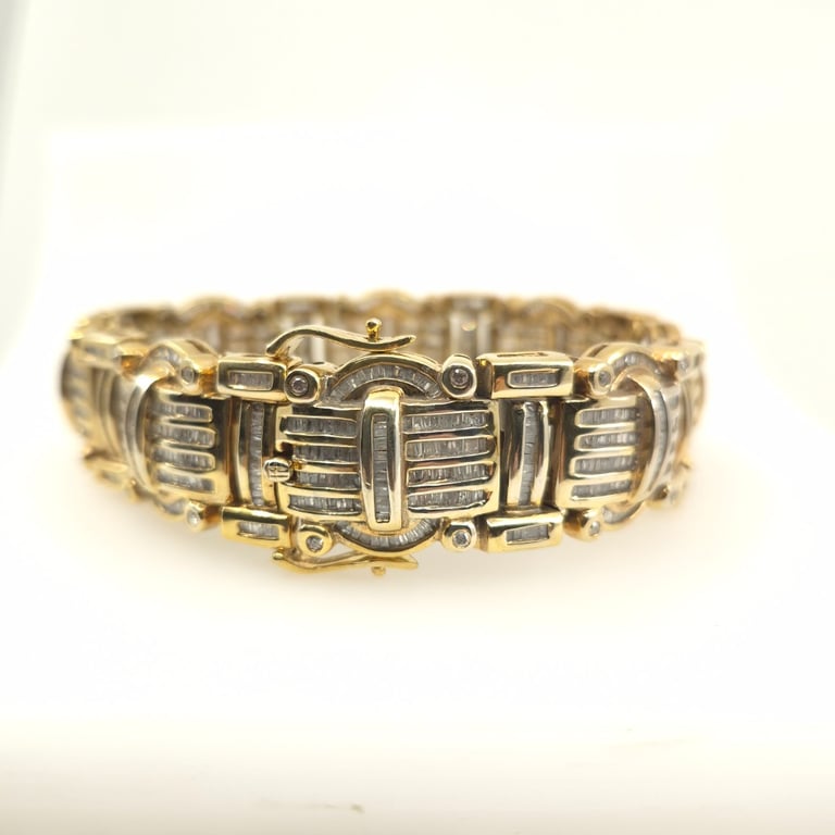 14CT YELLOW GOLD FANCY DIAMOND LINK BRACLET