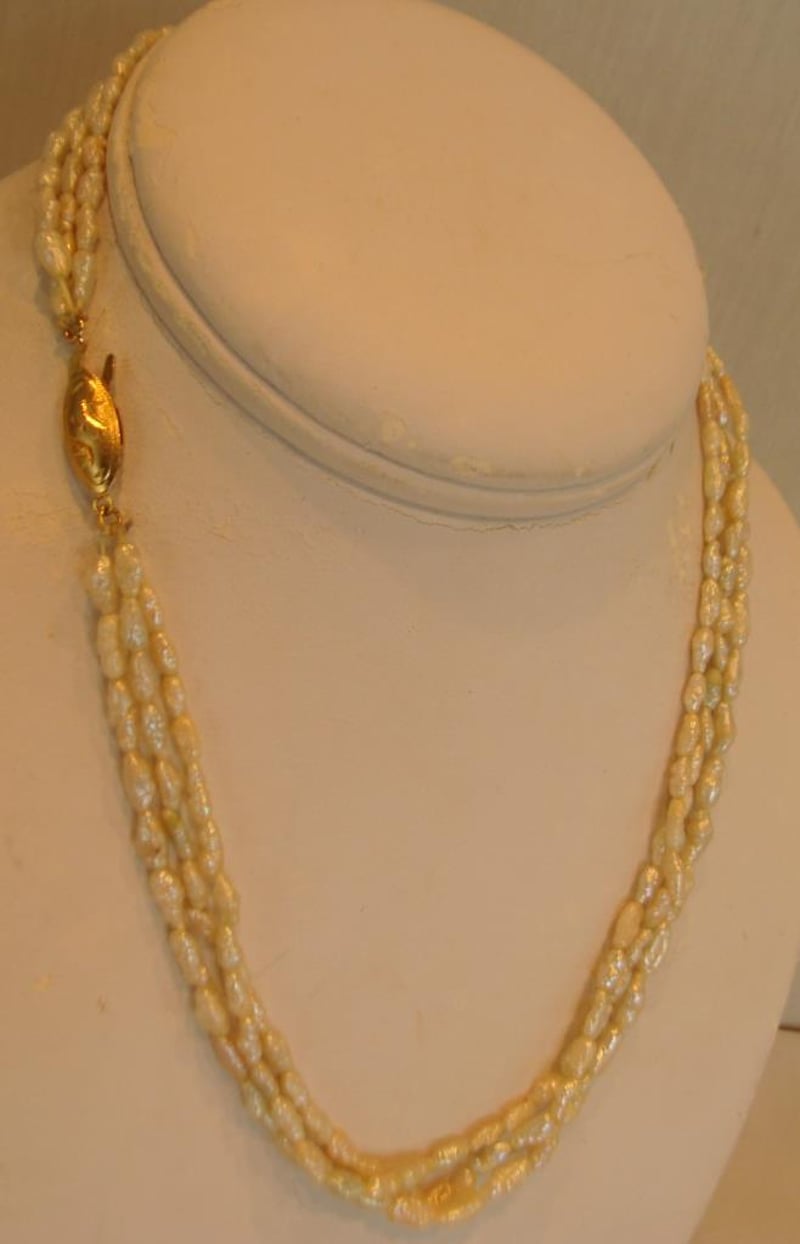 NATURAL PEARL NECKLACE WITH GOLD PLATED SILVER CLASP HALLMARKED SILVER.Condition: Good - Refer To Images586157+7