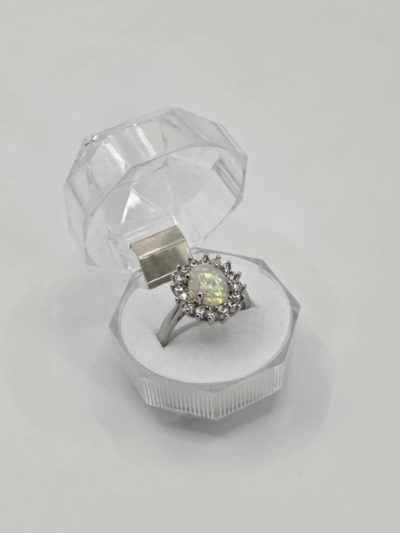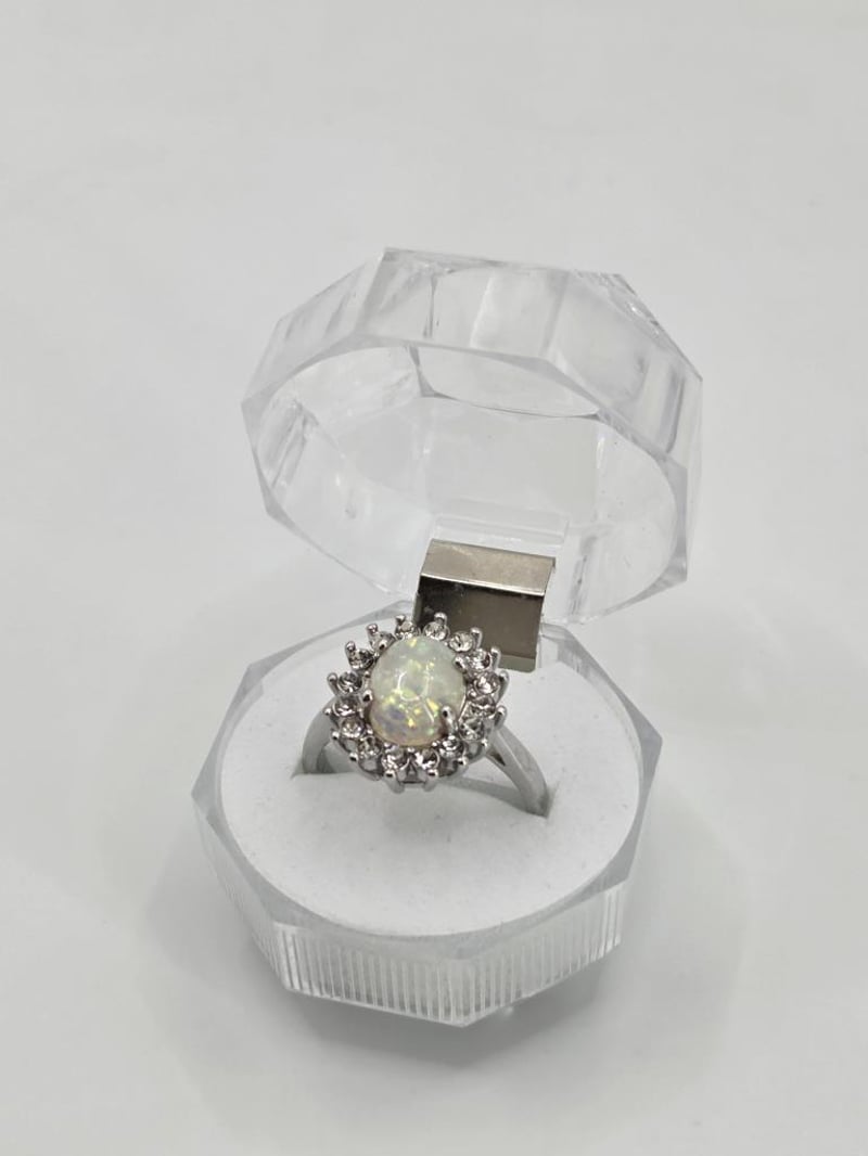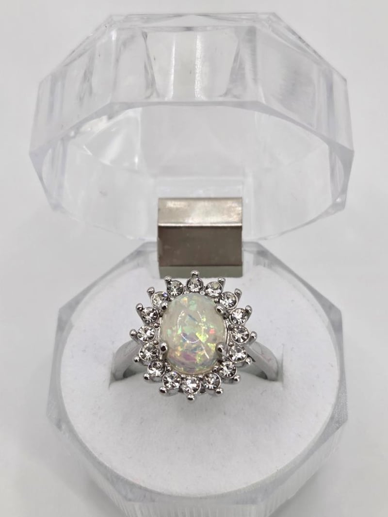 SYNTHETIC OPAL SIMULANT HALO RING – SIZE 8