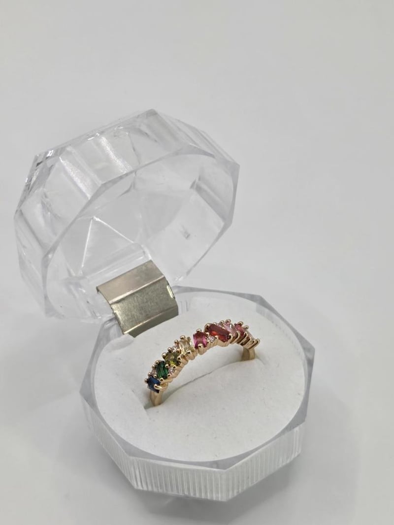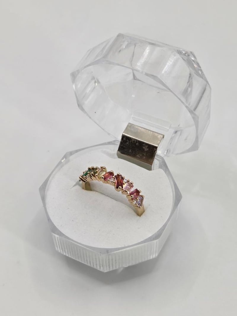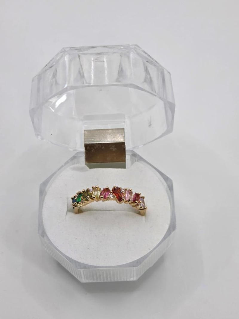 RAINBOW ZIRCON BAND RING – GOLD PLATED, SIZE 7