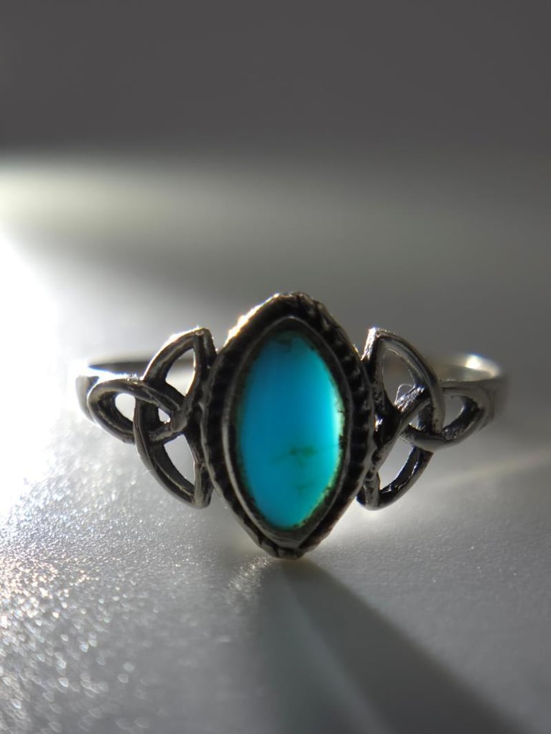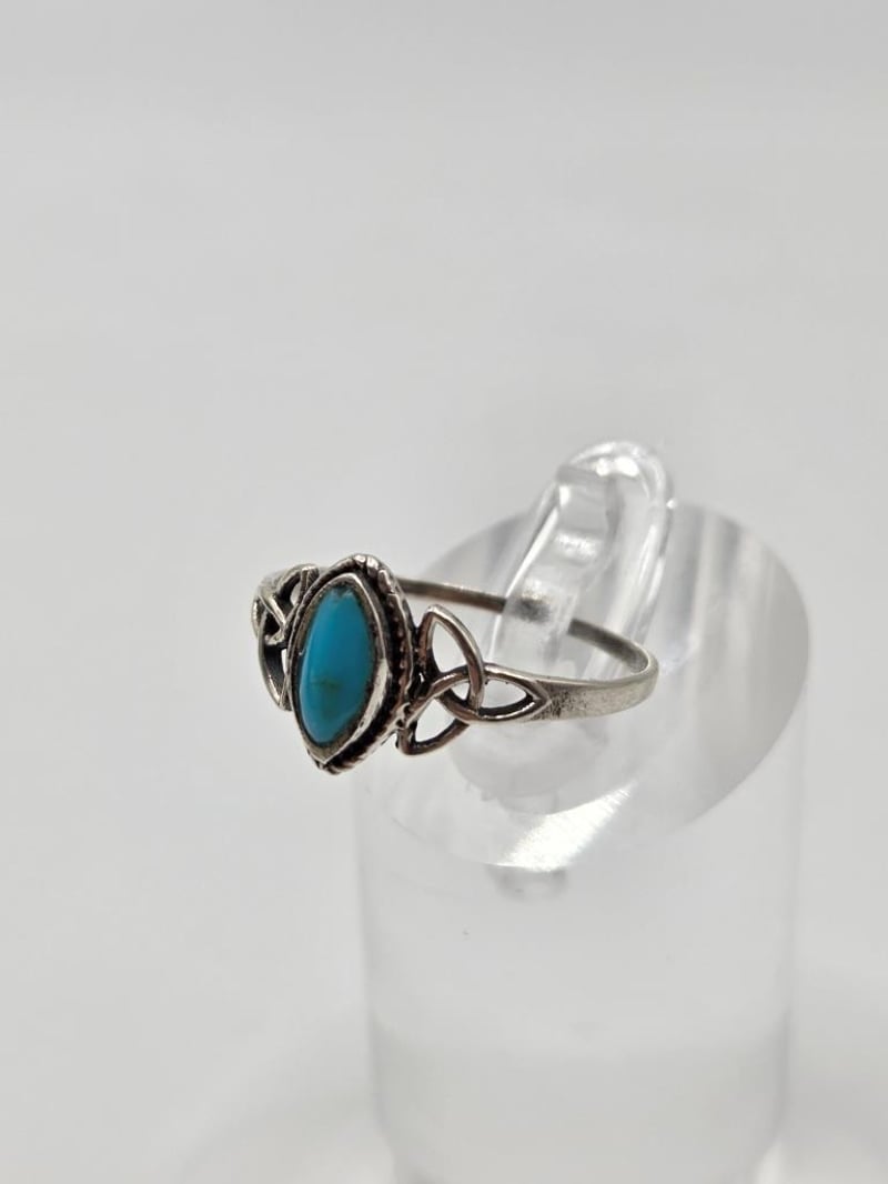 TURQUOISE RING – 2CT MARQUISE CABOCHON, 925 SILVER, SIZE 8