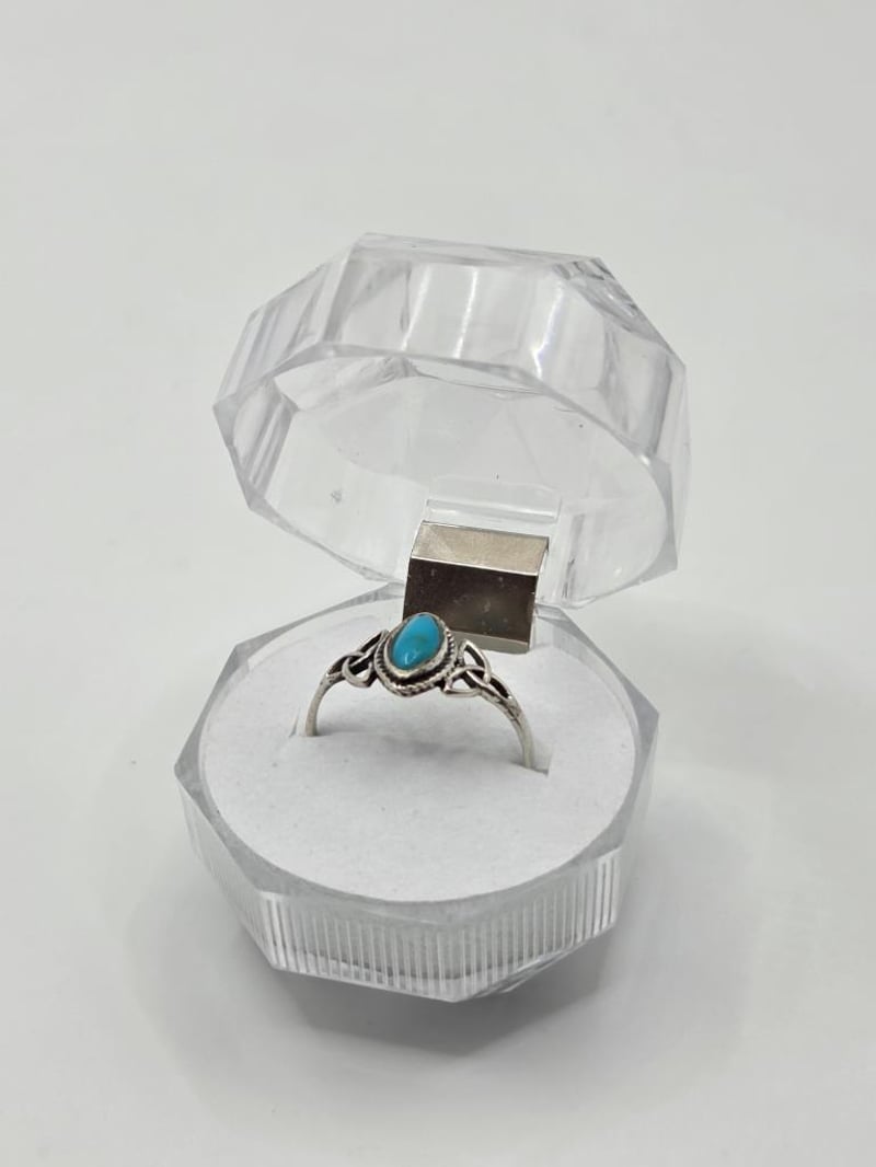 A Natural Turquoise Ring In 925 Silver Featuring An Estimated 2Ct Marquise Cabochon Cut Stone (~10 × 5 Mm). Displays A Blue-Green Colour With Natural Matrix Visible, Opaque Clarity. Ring Size 8. Report #352801, Issued By Certauth On 18/9/2025, Lists An Estimated Valuation Of Usd $250.00
