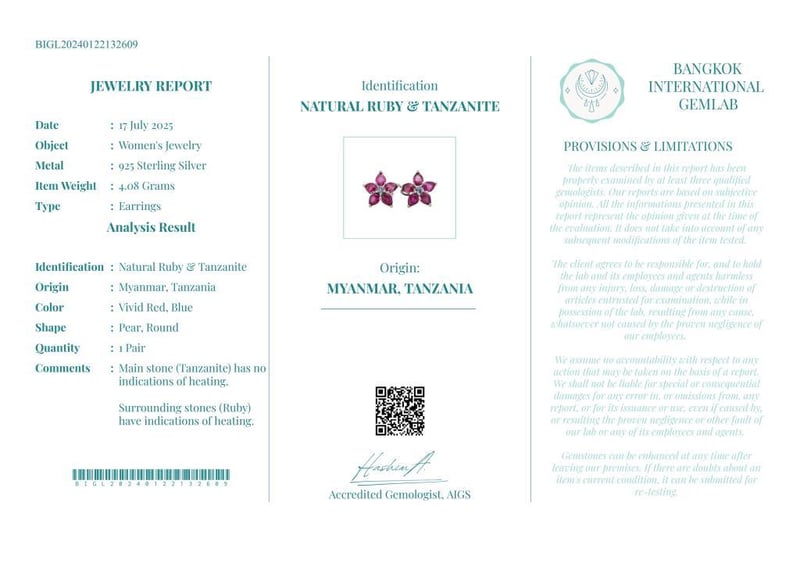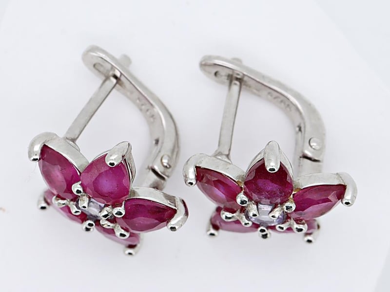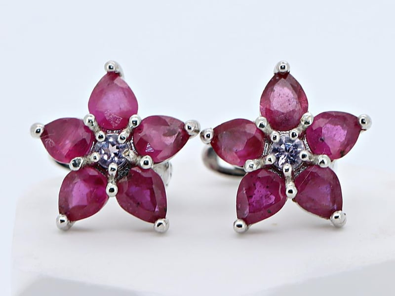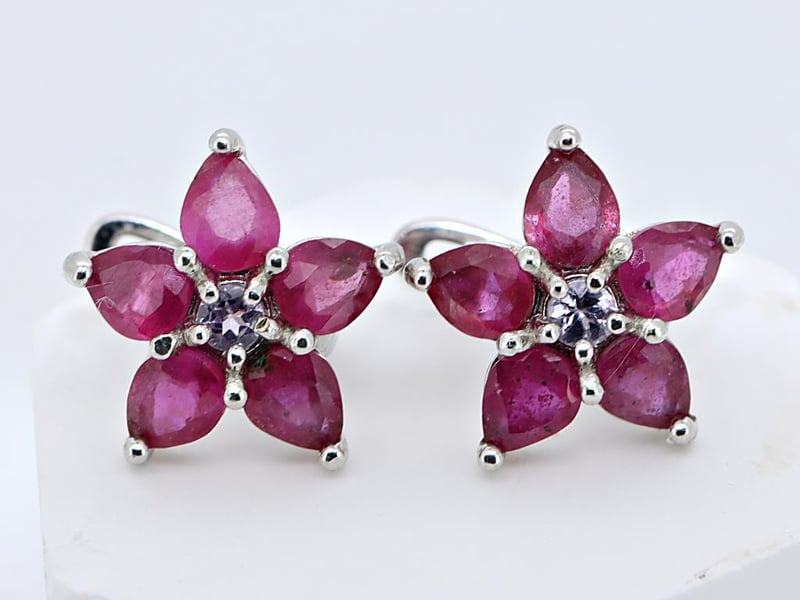 NATURAL BURMESE RUBY & TANZANITE (UNHEATED) EARRINGS ON 925 SILVER - WITH DIGITAL CERTIFICATE ONLY