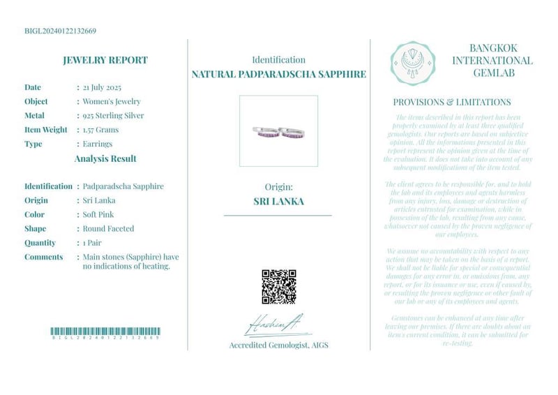 NATURAL PADPARADSCHA SAPPHIRE (UNHEATED) EARRINGS ON 925 SILVER - WITH DIGITAL CERTIFICATE ONLY