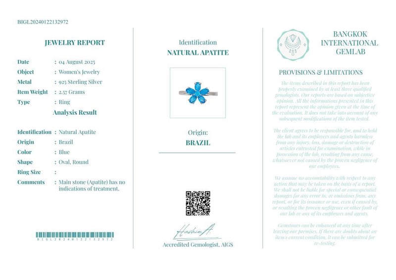 Comments : Main Stone (Apatite) Has No Indications Of Treatment.