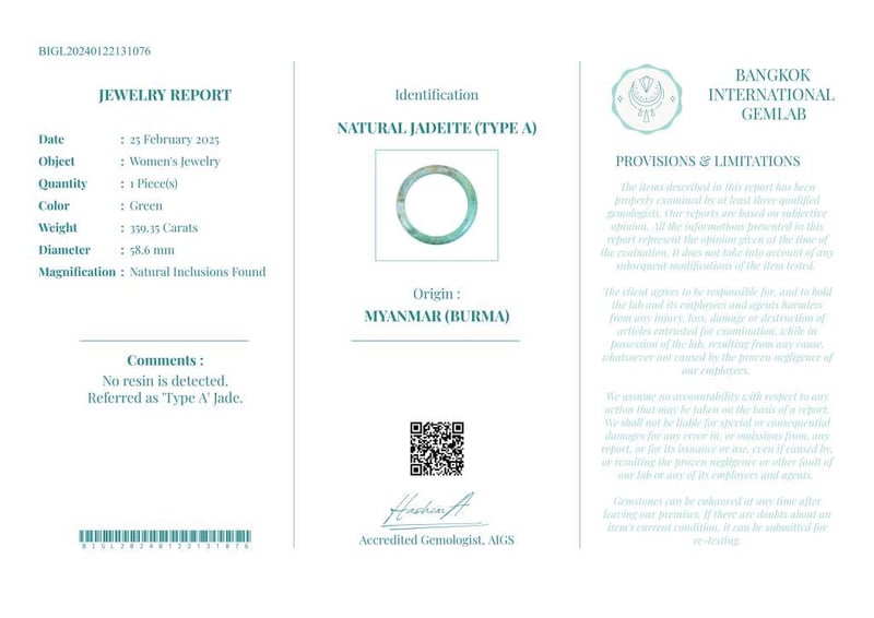 NATURAL BURMESE JADE BANGLE - WITH DIGITAL CERTIFICATE ONLY