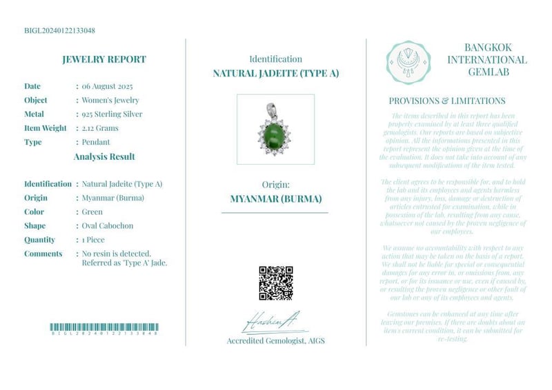 NATURAL BURMESE JADE PENDANT ON 925 SILVER - WITH DIGITAL CERTIFICATE ONLY