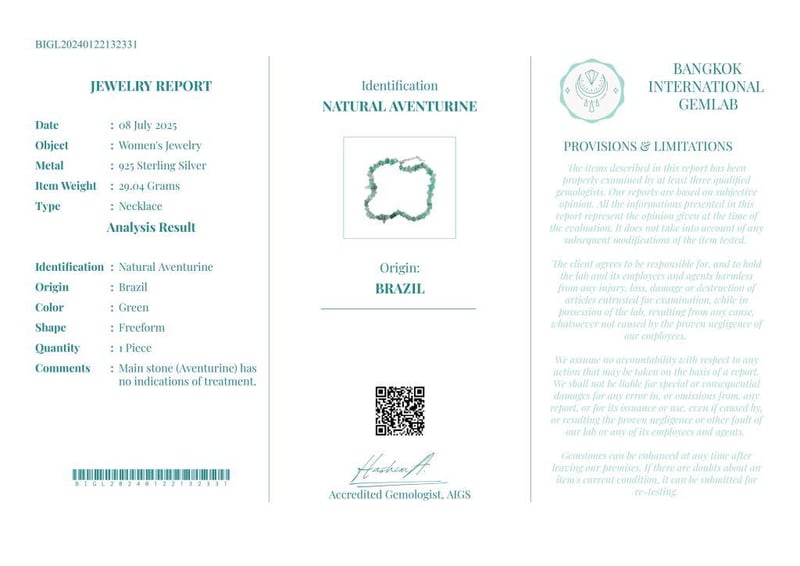 NATURAL AVENTURINE FREEFORM NECKLACE ON 925 SILVER - WITH DIGITAL CERTIFICATE ONLY