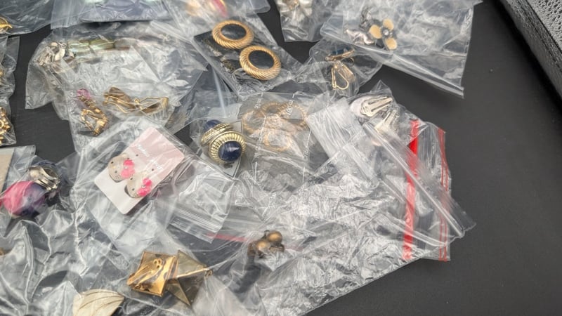 Comprehensive Vintage Jewellery Collection Featuring Predominantly 1970S-1980S Styling. Red Enamel Clip Earrings, Textured Gold-Tone Hoop Earrings, Delicate Filigree Pendants, Decorative Shield Brooches, And Assorted Charms Showcase Diverse Vintage Aesthetic. Notable Pieces Include Ornate Floral Designs, Rope-Textured Hoops, and classical motifs. Collection Presented In Original Protective Packaging, Ideal For Collectors, Vintage Enthusiasts, Or Jewellery Repurposing Projects.