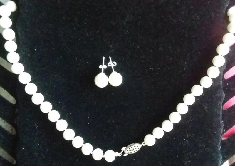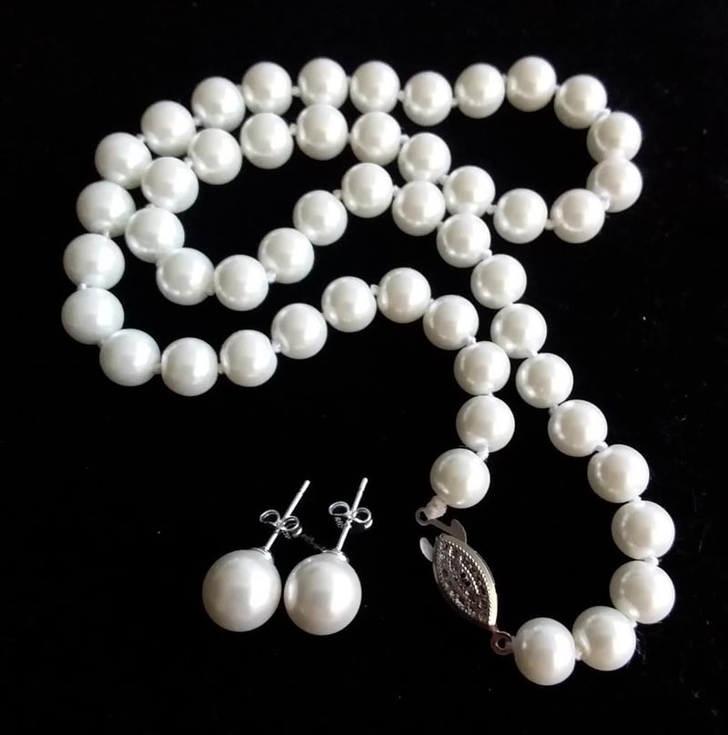 WHITE SOUTH SEA SHELL PEARL NECKLACE WITH STUD EARRINGS