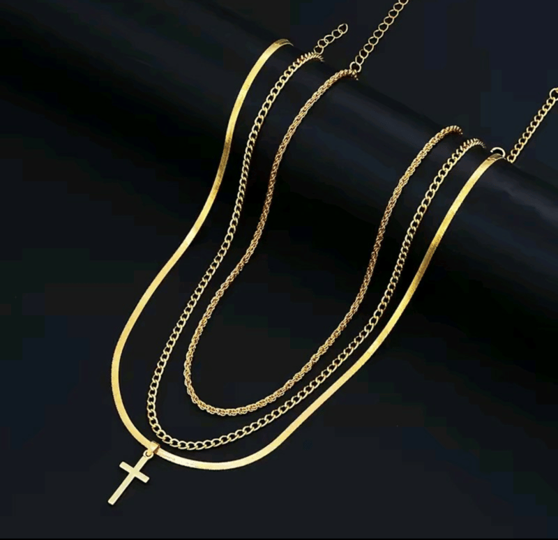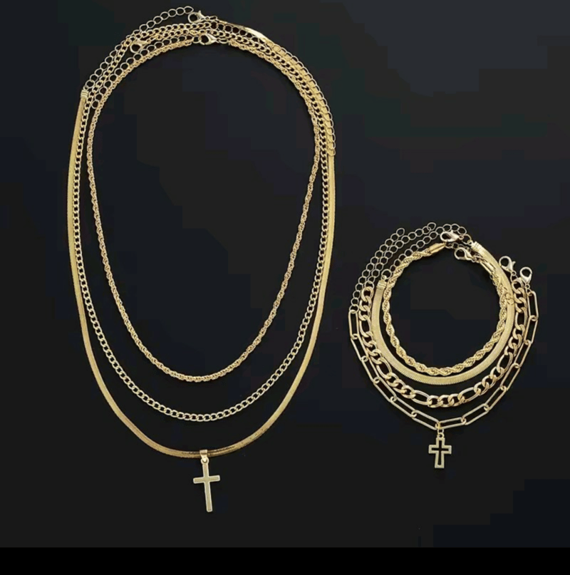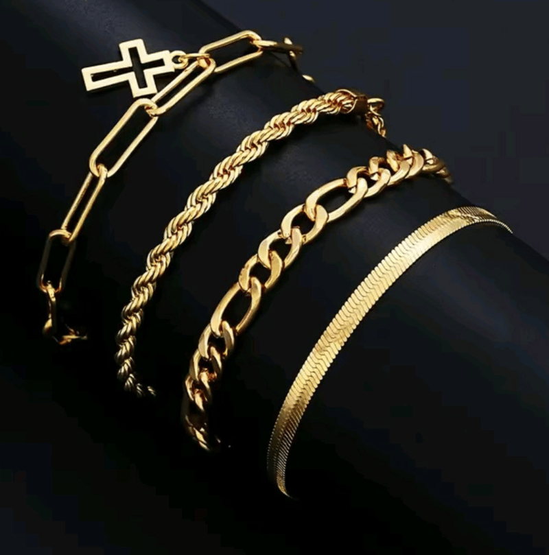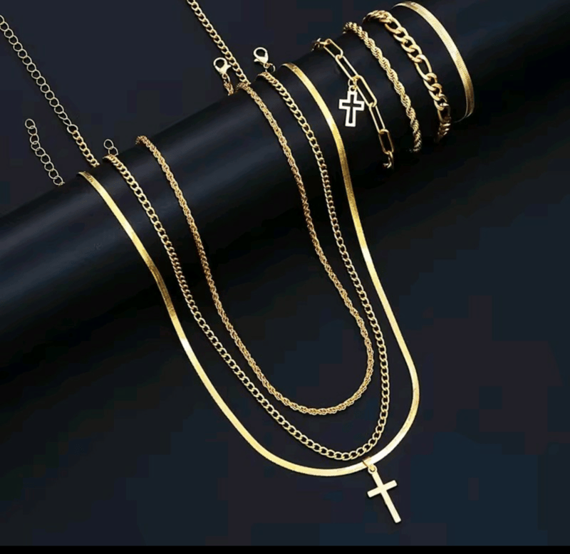 7 X GOLD STAINLESS STEEL UNISEX NECKLACES AND BRACELETS SET