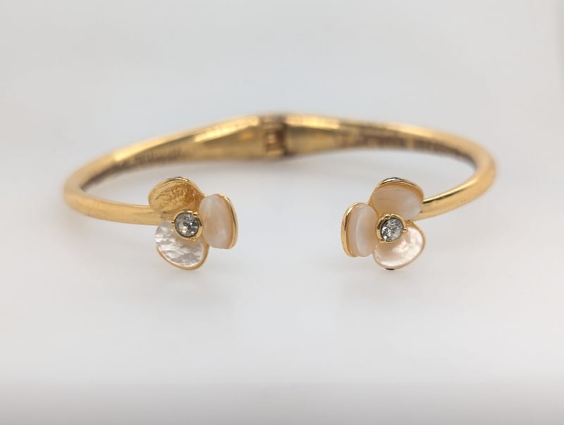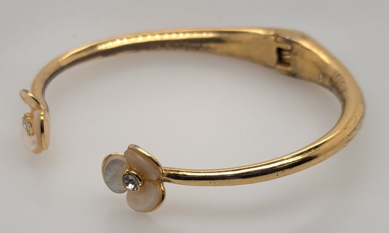 Bangle Features Two Mother Of Pearl Flower Style Designs With White Glass Stones