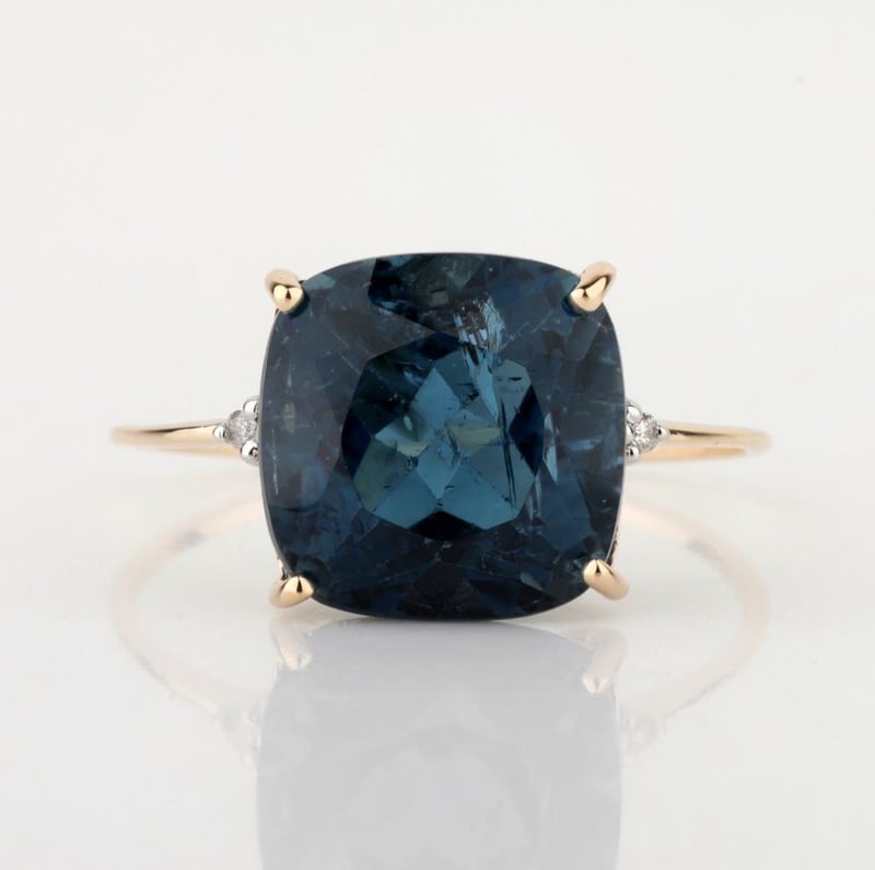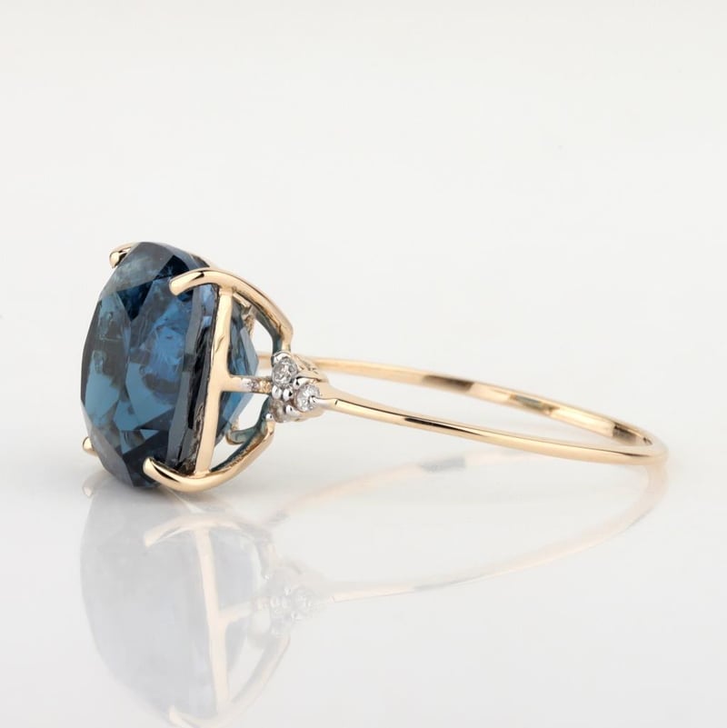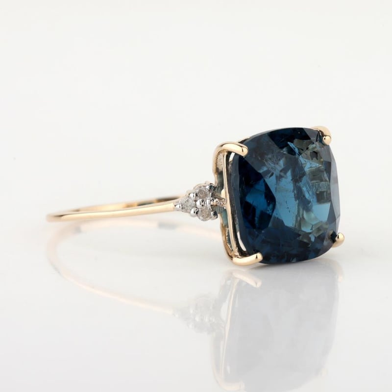 9CT YELLOW GOLD NATURAL LONDON BLUE TOPAZ & DIAMOND RING