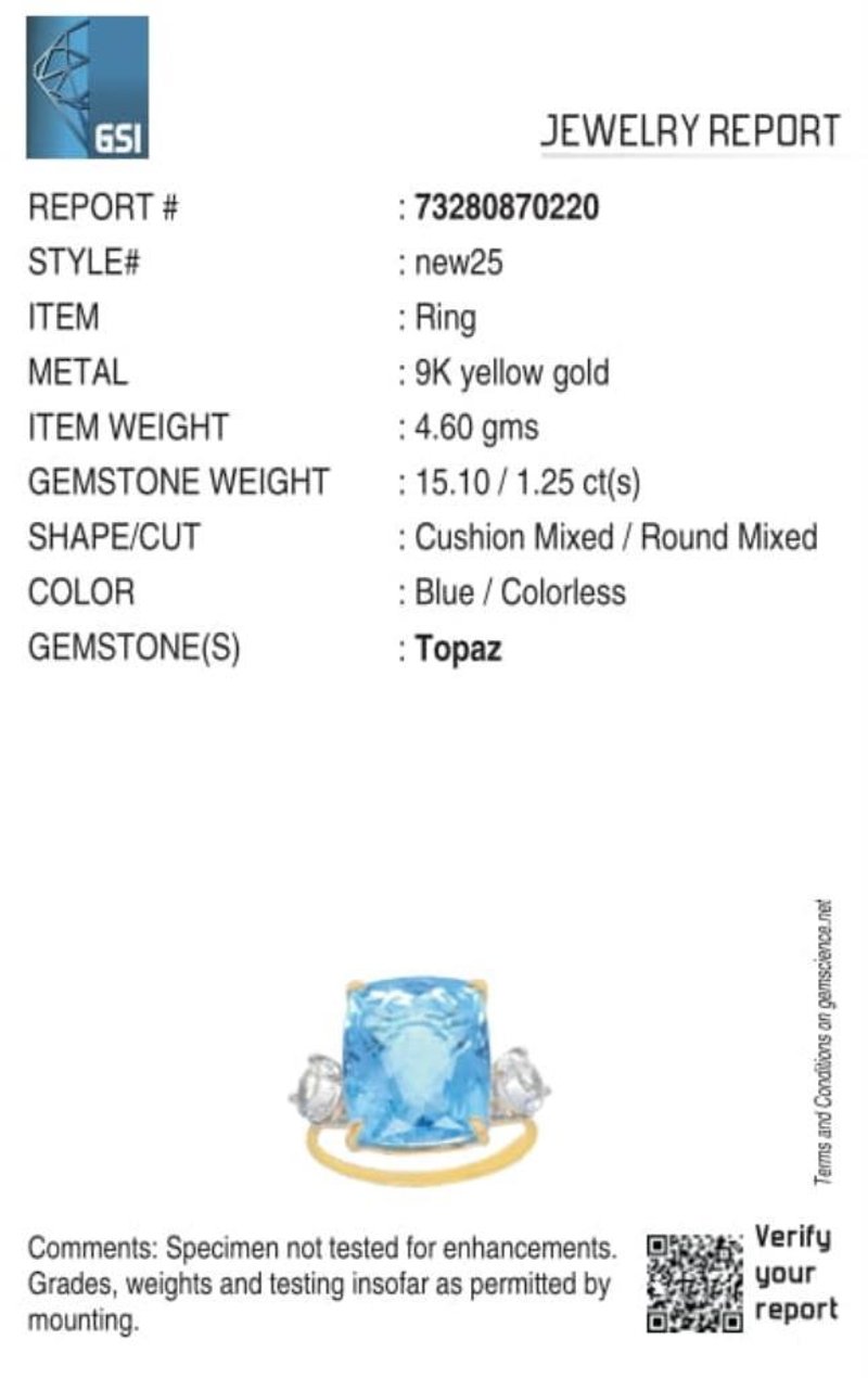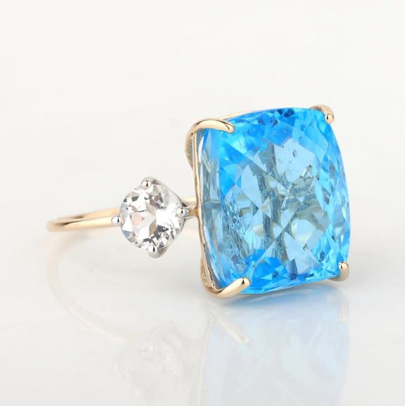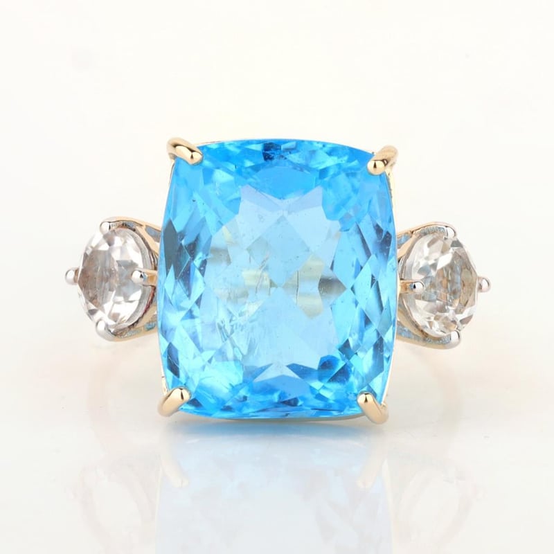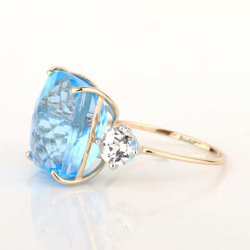 9CT YELLOW GOLD NATURAL SWISS BLUE TOPAZ / NATURAL WHITE TOPAZ RING
