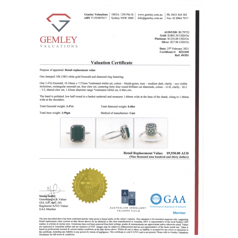 This valuation has been conducted by an independent third-party professional. The valuation amount is an assessment by the issuing valuer and does not reflect the auction value of the item.