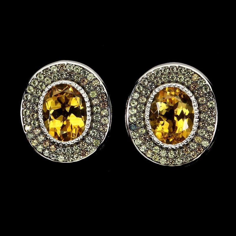 Natural Diamond Cut Sapphire & Citrine Earrings. Made In Solid Sterling Silver And Plated In14K White Gold. Features Natural Diamond Cut Fancy Sapphires And Natural Golden Citrine. Earrings Measure 18.0 X 16.0 Mm.