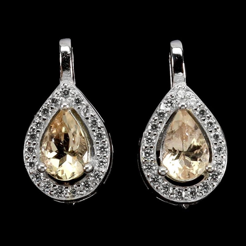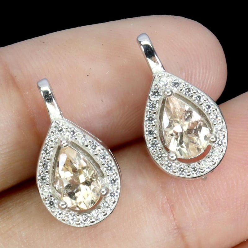 Natural Morganite Earrings. Made In Solid Sterling Silver And Plated In14K White Gold. Features Natural Peachy Morganite And Sparkling Czs. Earrings Measure 15X8Mm