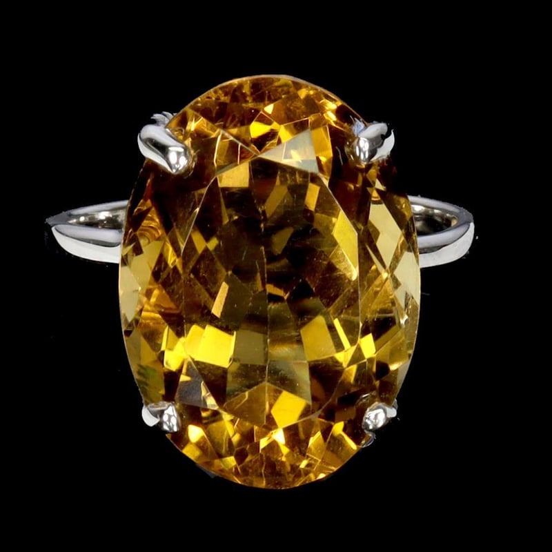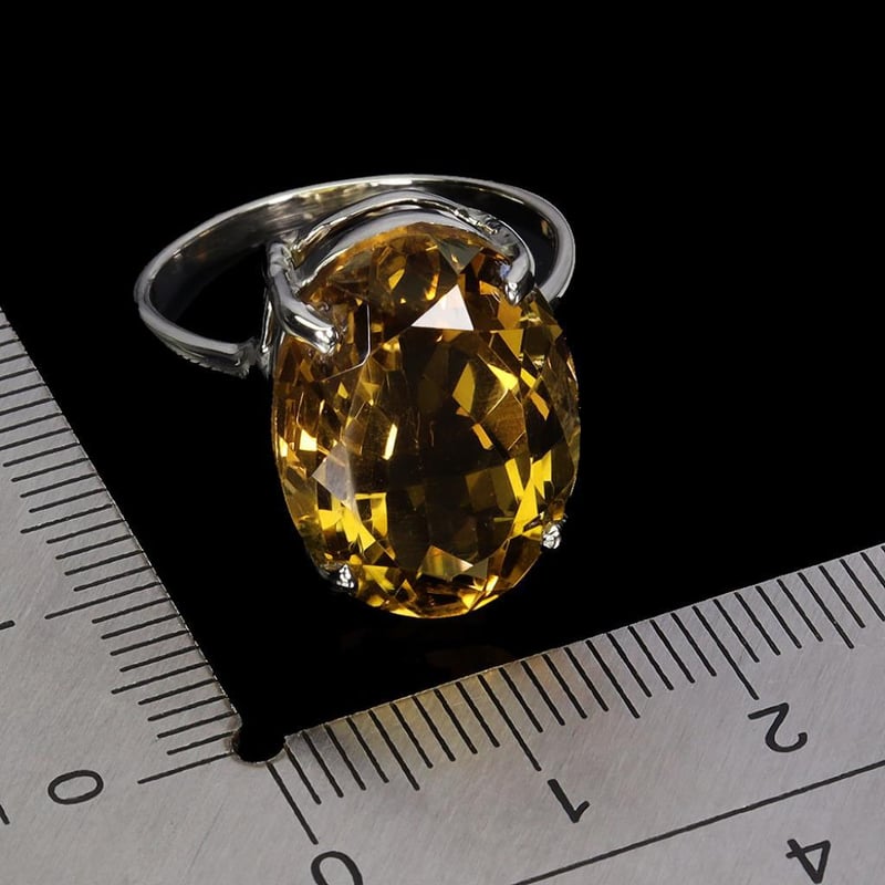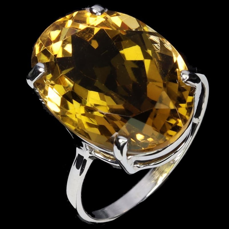 Handmade Natural Citrine Ring. Made In Solid Sterling Silver And Plated In14K White Gold. Features One Natural Oval Facet Golden Vitrine Measuring 18X13Mm. Ring Size 7