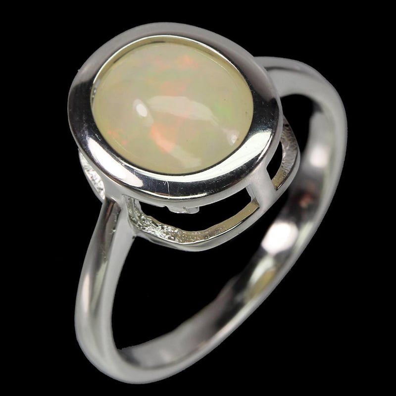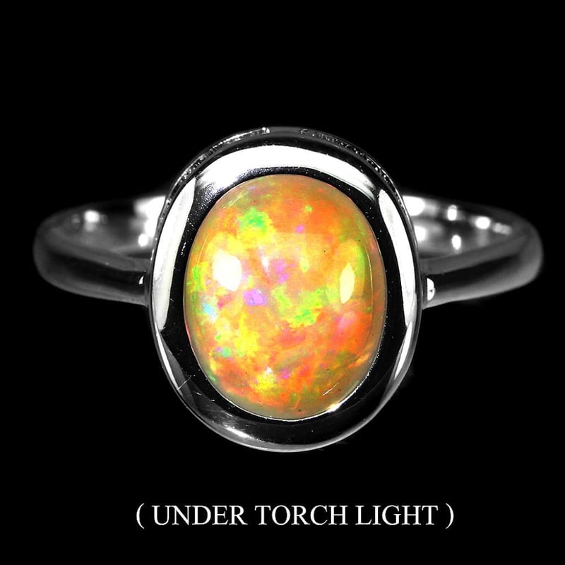 Natural Rainbow Fire Opal Ring. Made In Solid Sterling Silver And Plated In14K White Gold. Features Natural Oval Cabochon Rainbow Fire Opal. Ring Size 7