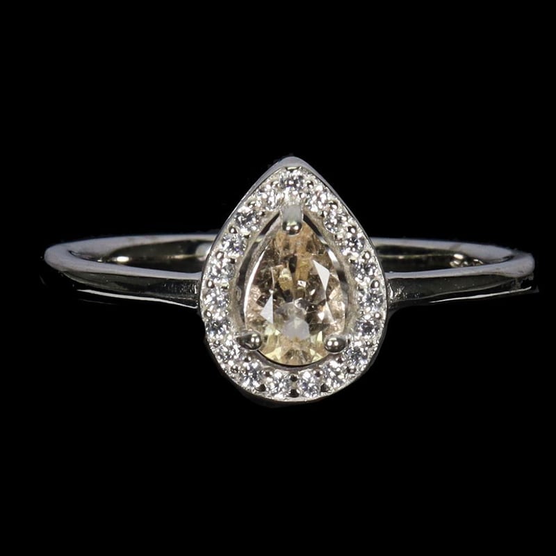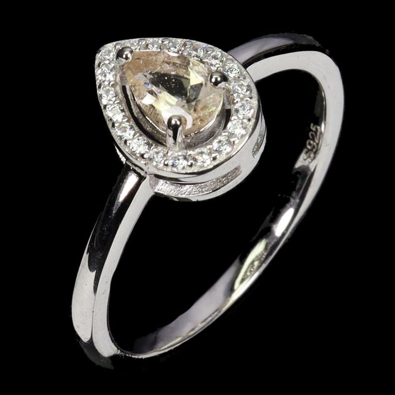 Natural Morganite Ring. Made In Solid Sterling Silver And Plated In14K White Gold. Features Natural Peachy Morganite And Sparkling Czs. Ring Size 6